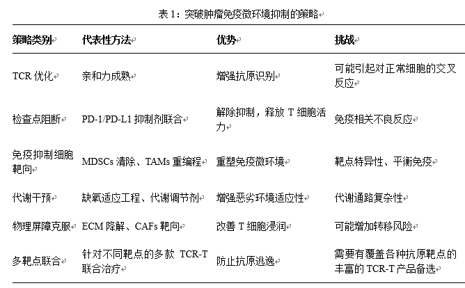 上一期,我们从5个方面详述了免疫微环境对TCR-T细胞治疗的抑制作用,本期将从6个方面总结突破肿瘤免疫微环境抑制的策略,为开发新一代高效TCR-T细胞疗法提供理论依据和研究思路。从优化TCR-T细胞本身功能到改造免疫微环境,多管齐下以期突破免疫抑制屏障。