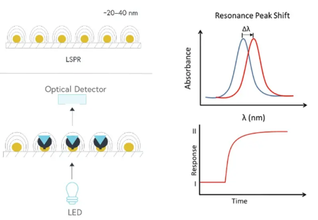 图2. 使用局域表面等离子共振(LSPR)检测分子互作[3]